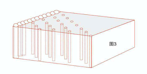 布孔方案1 (圖3):相連的測(cè)孔+豎孔(用相連的鉆孔方法來(lái)創(chuàng)造自由面)